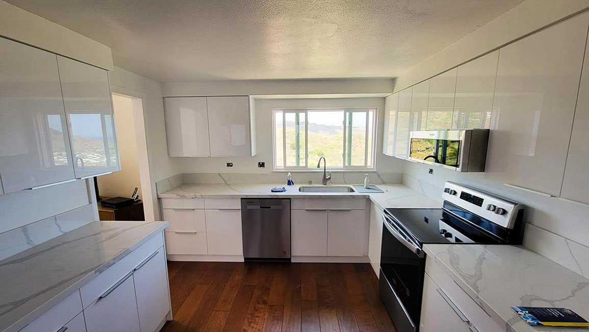 For a more involved project, we have the knowledge and experience to handle a large-scale renovation that includes your entire home. Our team can do anything from flooring to countertops and we can also help you decide on a design direction if you need that, too. Our project managers and construction crews are familiar with all the industry standards and you can rest assured knowing that your home will be built to code with only the best materials. Click below to get the process started, or for faster service, give us a call at 808-735-8595.